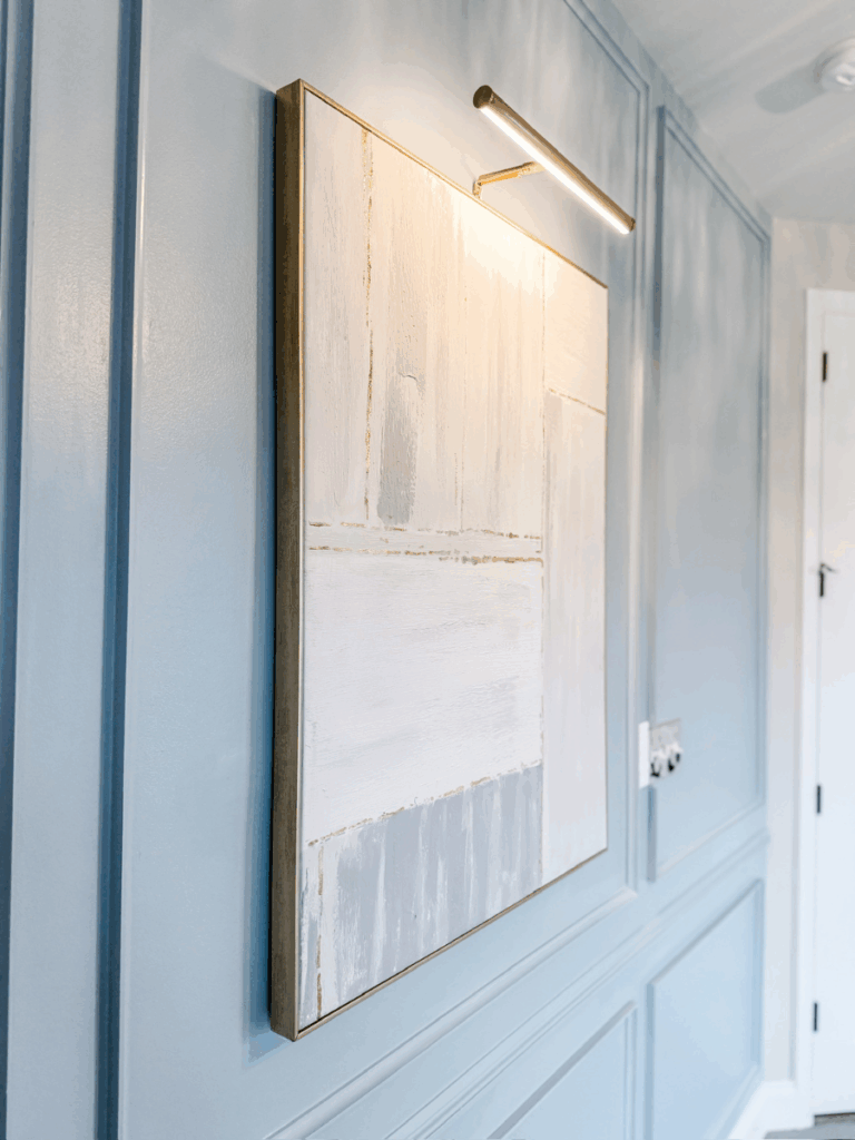 I can’t get over how great this picture light is. Let this serve as my reminder to you that great lighting isn’t reserved for galleries or museums. Picture lights are an easy, stylish upgrade you can add to an office transformation or any other room in your home. As you can see from the pictures before, this art piece conveniently covers several electrical outlets, giving plenty of room to plug in and hang the picture light.