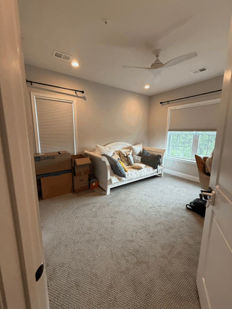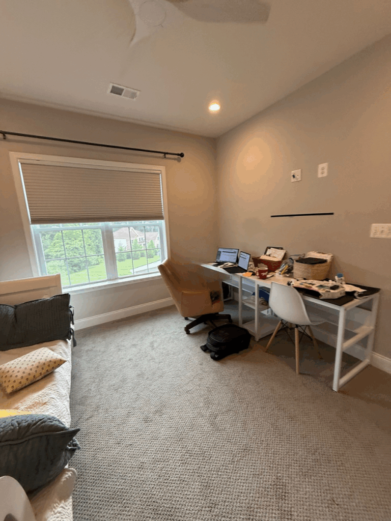 T doesn’t work from home every day, but when she does, she wants to do it in a place that makes her feel like the professional woman she is, not an afterthought. Here are some before images of the space to give you an idea of what we were working with. As you can tell, this space has great bones. Like the rest of the home, T’s office has high-quality carpeting and plenty of natural light. We just needed to add some personality so she could really feel at home.